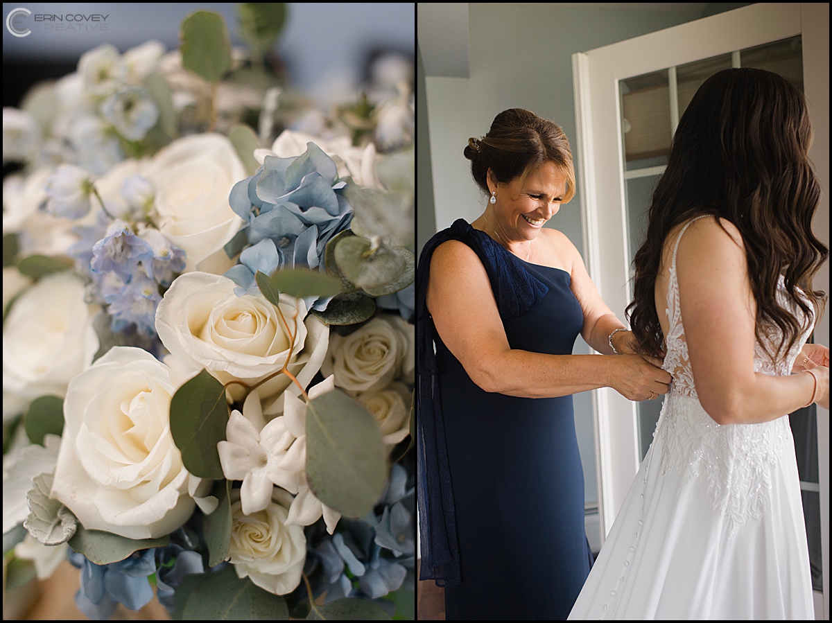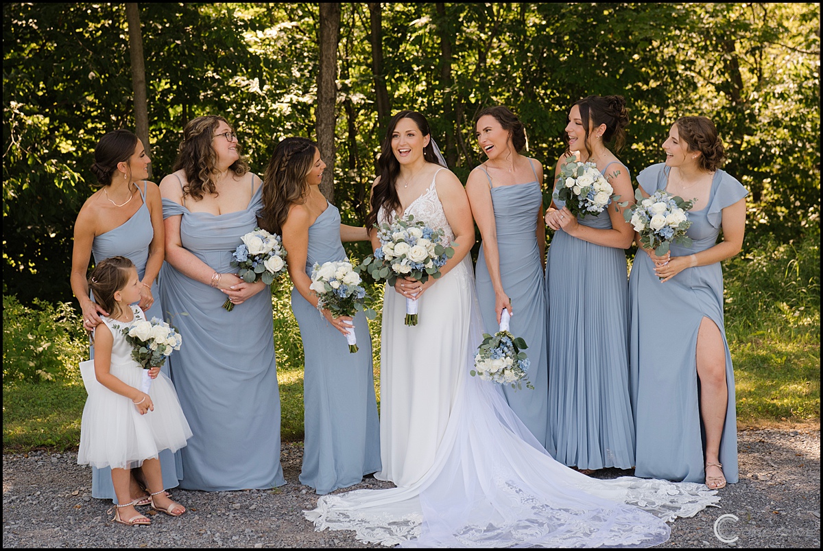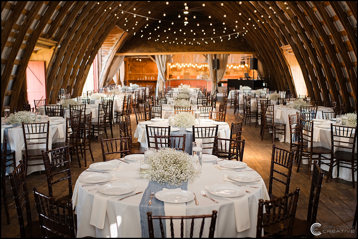 Soft blue tones set the mood for the entire day at this Hayloft on the Arch wedding — woven through the florals, bridesmaid dresses, table runners…even the bridesmaid’s pajama sets! The palette felt calm, elegant, and perfectly matched the easygoing couple, and the airy charm of the Hayloft on the Arch’s barn and sprawling fields.