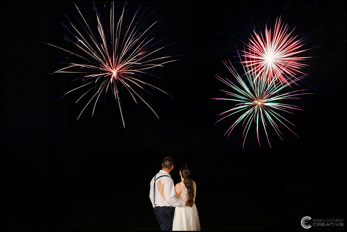 As the music ended, everyone stepped out onto the back lawn, the sky erupted into a burst of fireworks—bright colors reflecting in the guests’ eyes, cheers echoing across the property, the couple holding onto each other as the world sparkled above them. Perfect for the Fourth of July weekend!