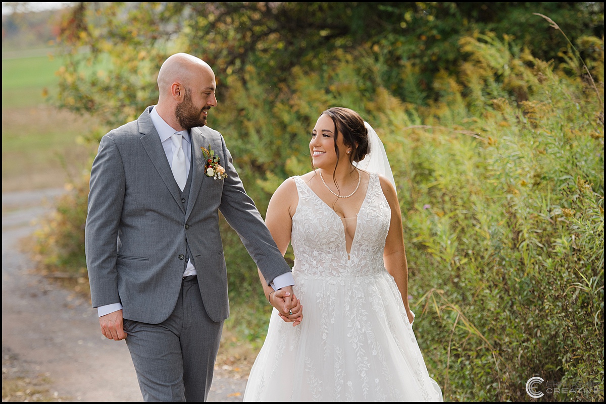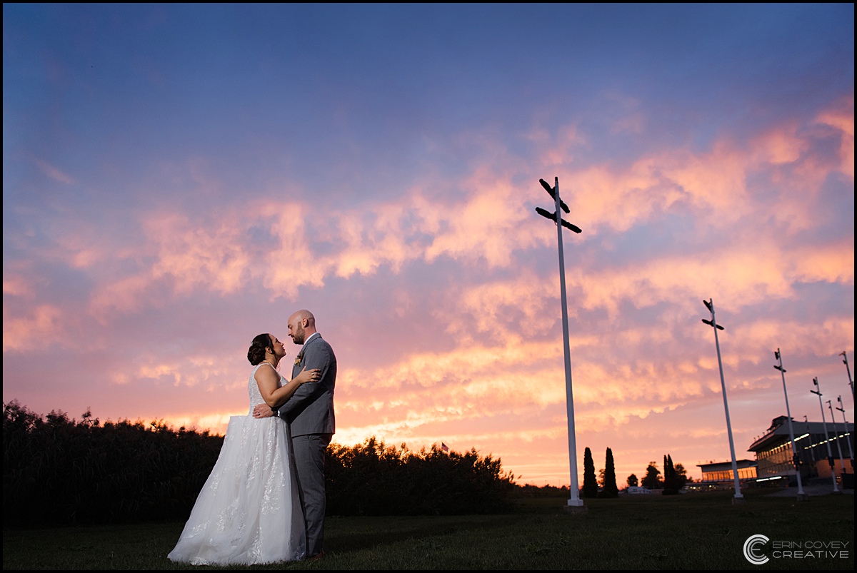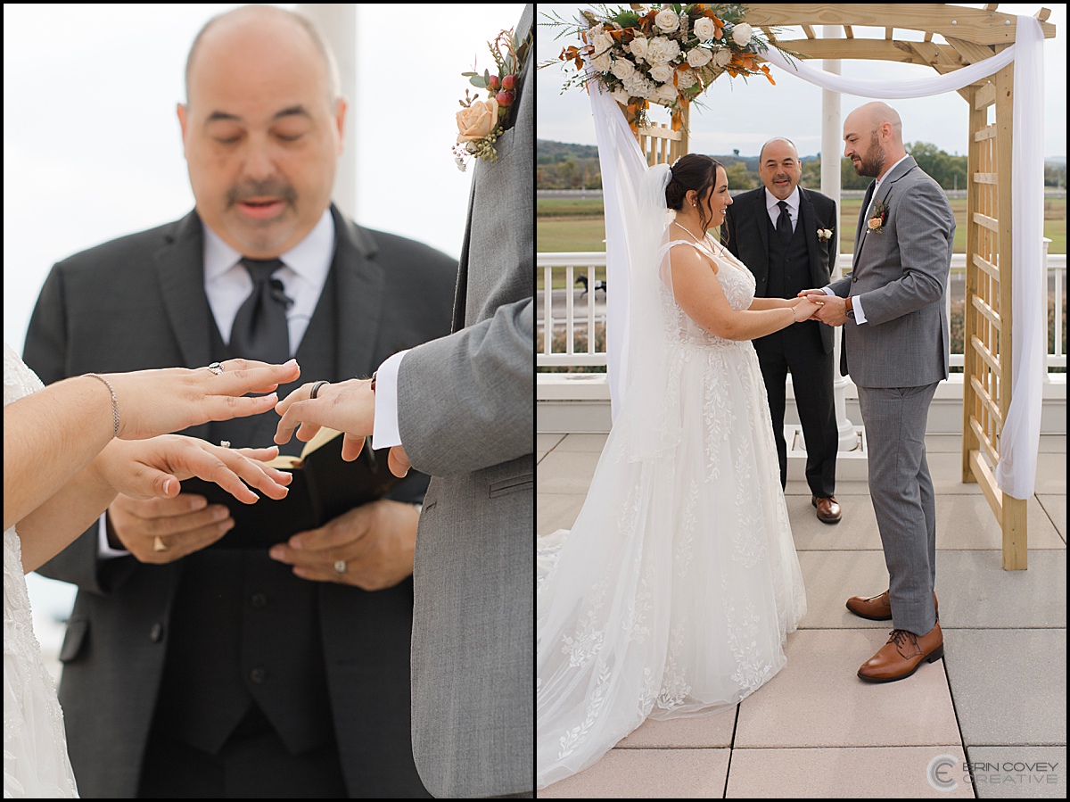 Wedding guests were treated to a warm September day at Vernon Downs as these two said their vows overlooking the horse track. As if on cue, a harness racer cruised by during the ceremony! The setting felt quintessentially Upstate New York in the fall—sage green hues, autumnal bouquets, wide open skies, and the epic Vernon Downs sunset that I fall in love with over and over again.