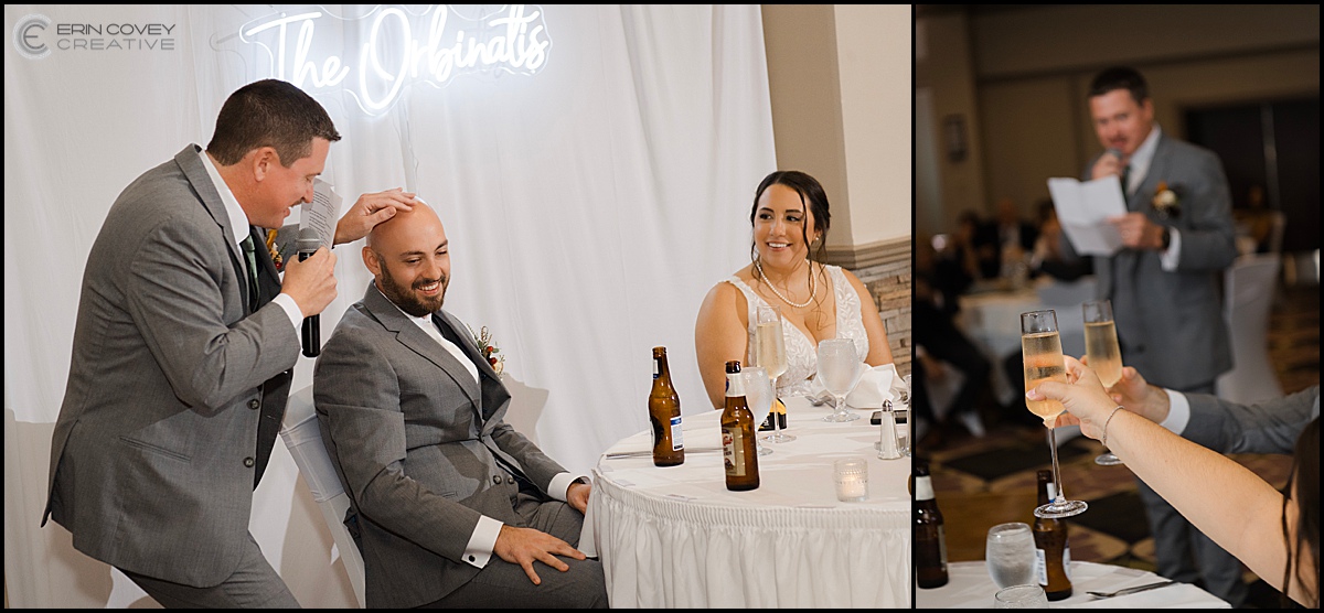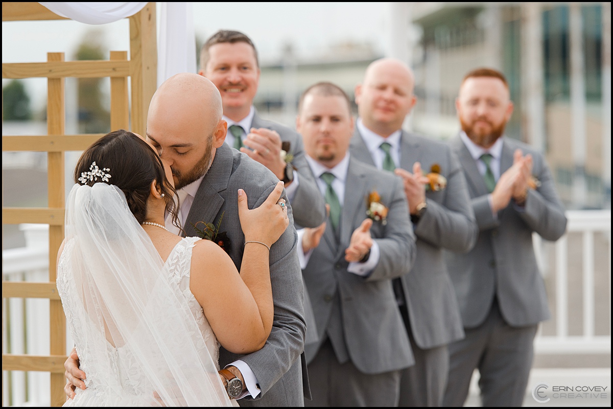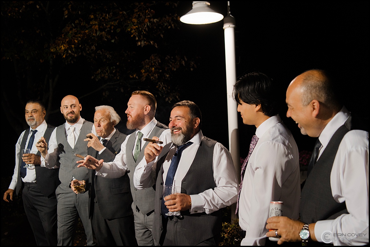 Inside, the reception carried that same relaxed, celebratory energy. Laughter echoed through the room, glasses clinked, and once the dance floor opened, it stayed full. At one point I slipped outside to find the guys gathered in a small circle, cigars lit and jackets off. I LOVE capturing those authentic moments that happen at various areas of the grand space at Vernon Downs.