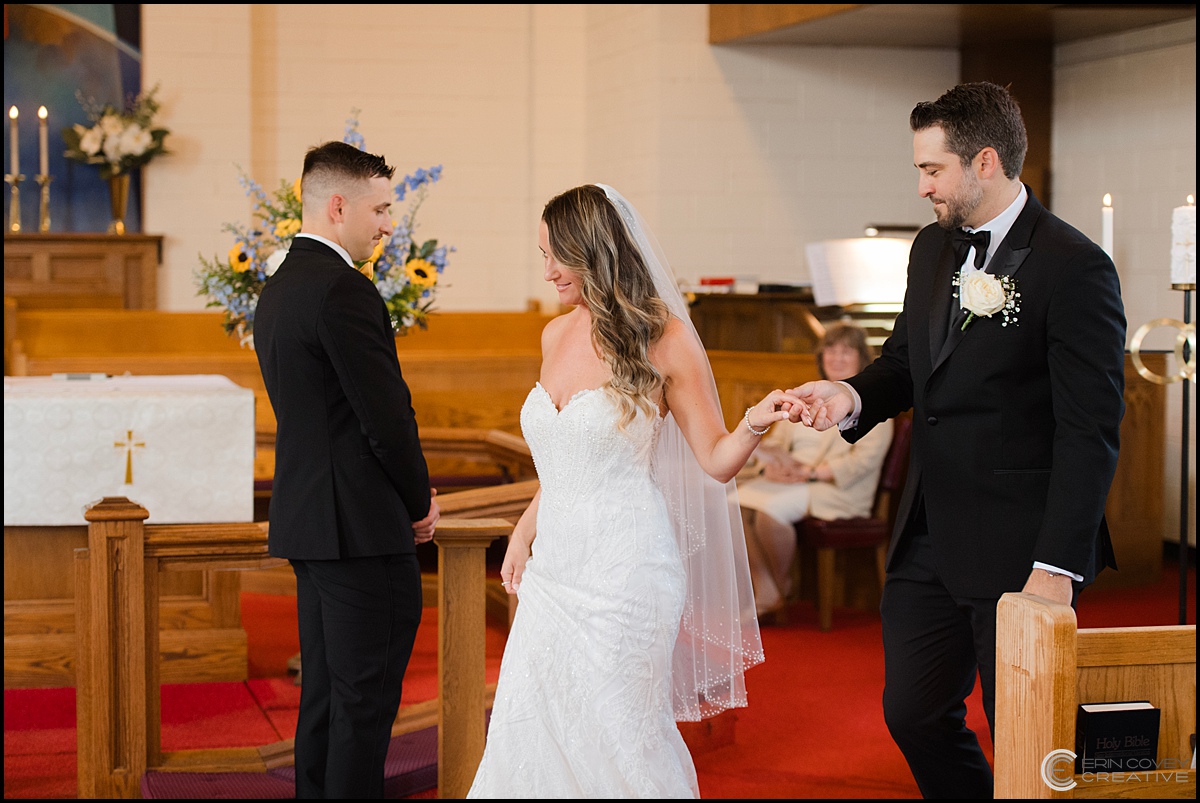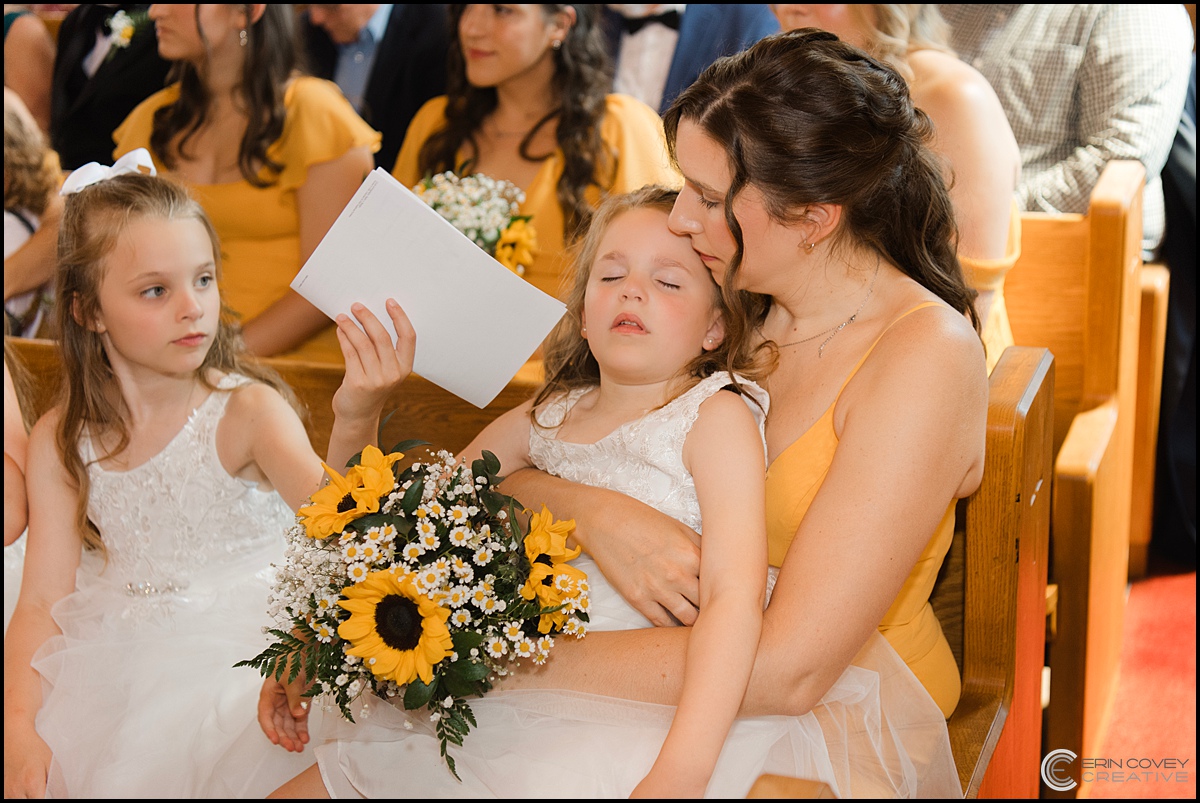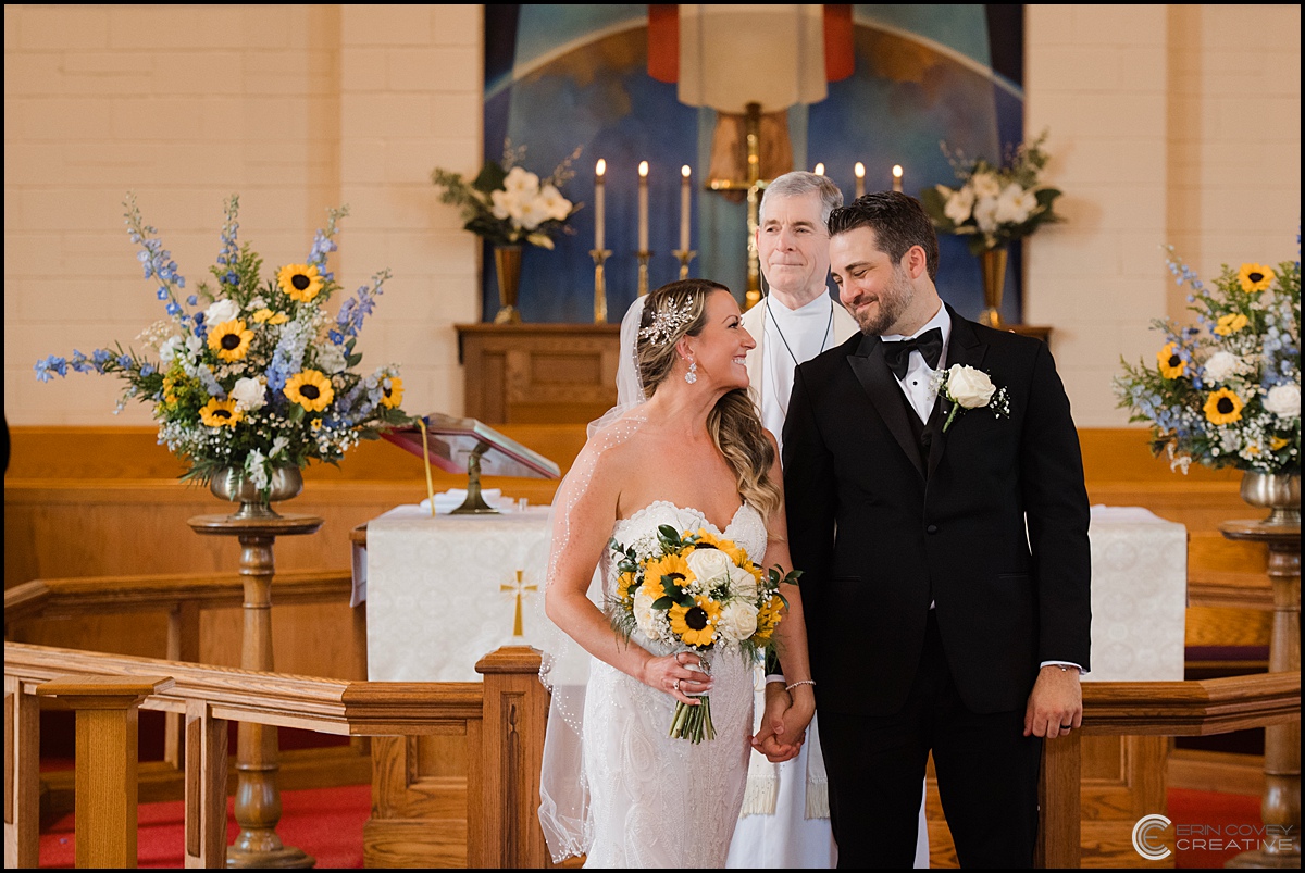 Bright, golden tones perfectly capture the joy of a wedding — and this Vernon Downs celebration did just that! Marigold and sunflower accents filled the day, from the bridesmaids’ dresses to the altar flowers to the reception centerpieces, radiating warmth and happiness. We photograph weddings at Vernon Downs often, and it always delivers! (One of our weddings even made it into one of their ad campaigns!)